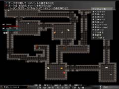 (注)shadeは未完成のゲームです。ソースファイル自体手元にない状態なので、今後のアップデートも恐らくありません。バグや操作上不親切な点があると思いますがご了承ください。操作方法はテンキー1-9で移動、0で物を取得/階段を下りたりします。またスペースキーでコマンドメニューが出ます。