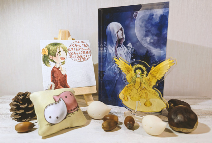 実物特典は、実際に皆さんのお手元に配送される特典です。個人での制作となりますが、試行錯誤を繰り返しながら実物のグッズを用意しました。最後のお断り書きもお読み下さい。